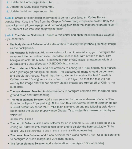 Chapter6 Casestudy 1 Doc Chapter 6 Case Study Case Study Javajam Files Index Html Javajam Css Menu Html Music Html Index Html Expected Course Hero