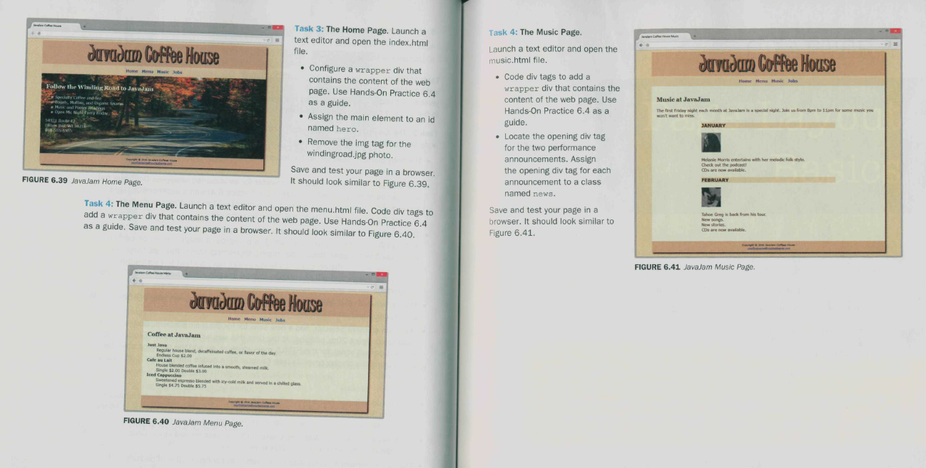 . CIS216-HTML-CSS Assignments Chapter 6 javajam musichtml Go to file Go to file T. Copy all of the files from the chapter6startersjavajam folder. Go to line L.